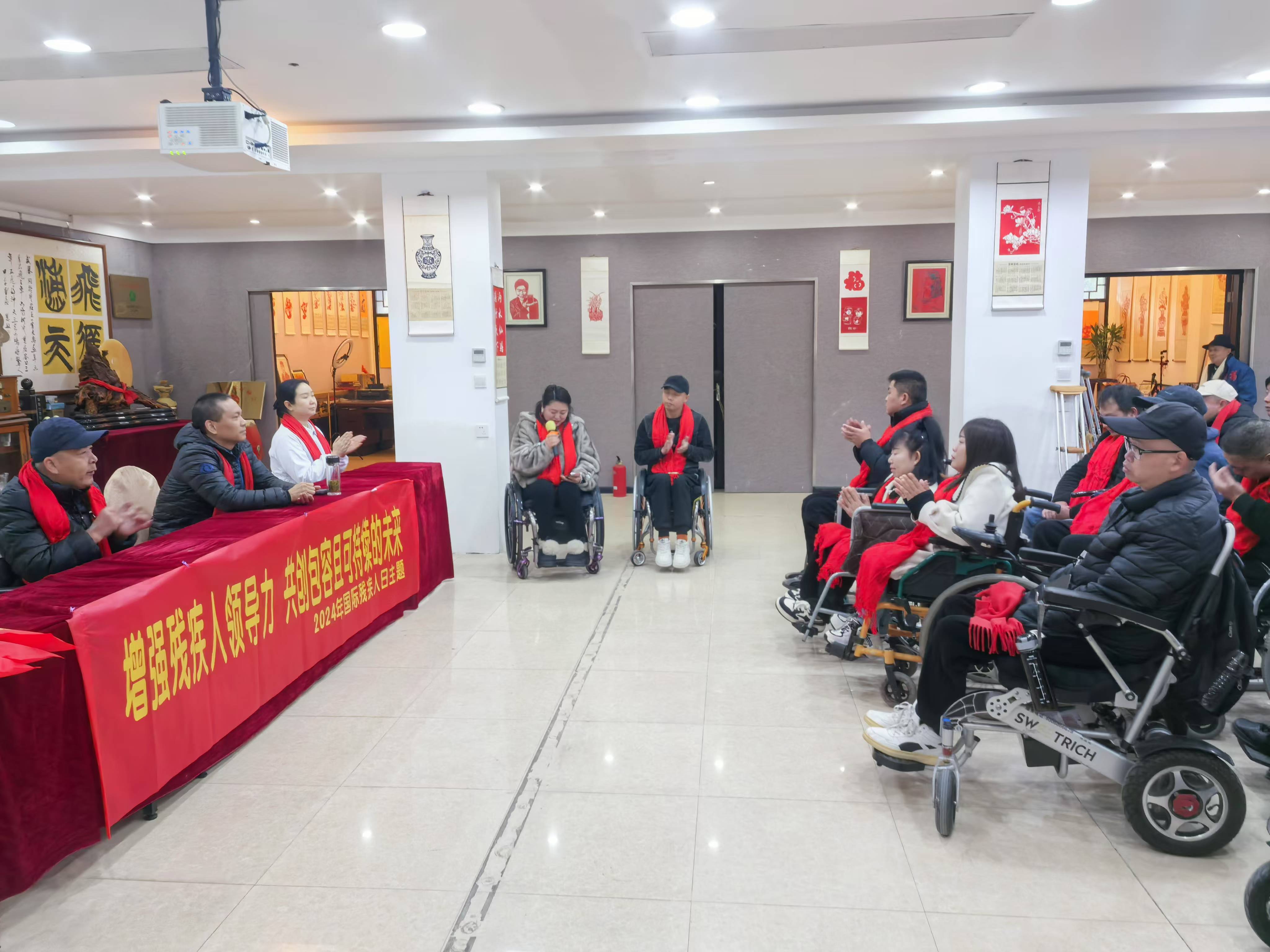 在“国际残疾人日”即将来临之际,11 月 29 日上午,市残联联合市第一人民医院主办,省残疾人文化创意产业基地湖北沔街工艺美术有限责任公司与“无碍更有爱”福祉公益项目承办,以“增强残疾人领导力,共创包容且可持续的未来”为主题的活动顺利开展。脊髓损伤残疾人及亲友、爱心人士及助残志愿者近100人参加活动。